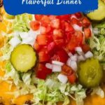 Fresh toppings make all the difference. Chopped tomatoes bring juicy brightness, while shredded lettuce adds crisp freshness reminiscent of the original burger. The white onions and pickle chips provide crunch and sharpness, balancing the gooey richness underneath.