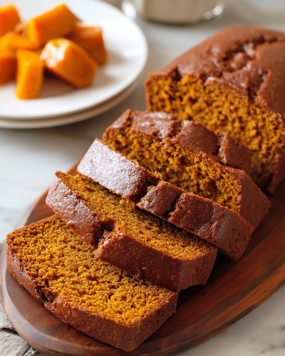 This pumpkin bread shines on its own but pairs beautifully with creamy soups, fresh fruit, or strong coffee. Try serving it alongside a hot cup of chai tea or a bold espresso to complement its warmly spiced flavors.